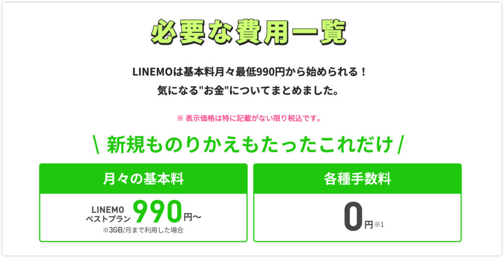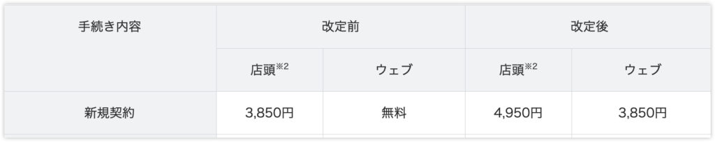 これまでLINEMOの新規契約は無料でしたが、今後は一律で3,850円(税込)がかかるようになります。