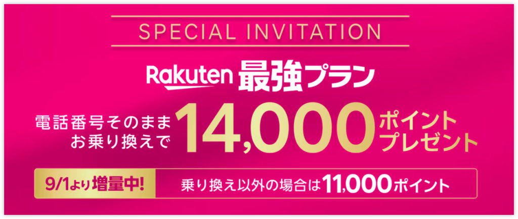 専用の申し込みページから契約するとMNP契約で14,000ポイント、新規契約でも11,000ポイントを貰うことができます。最強U-NEXT、最強プランどちらでも利用可能です。