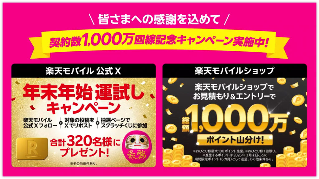楽天モバイルが、ついに契約数1000万回線を突破しました。
