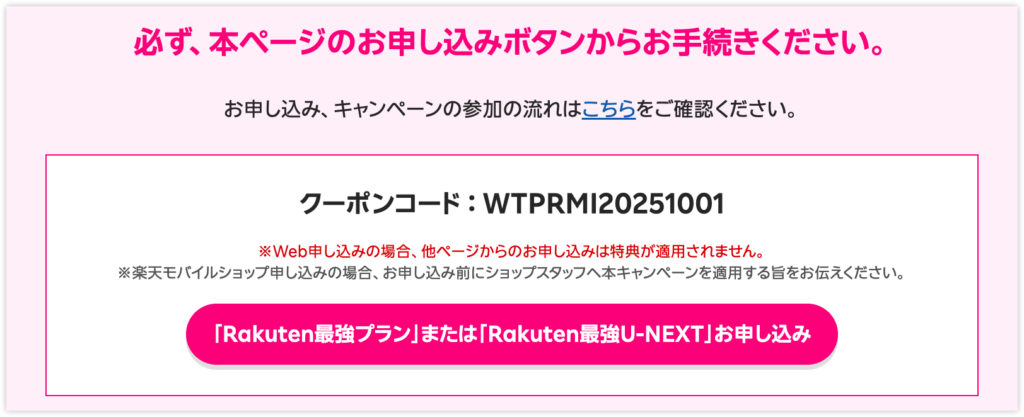 必ず専用の申し込みページから契約する必要があります。(申し込み画面で「WTPRMI20250411」のクーポンが適用されていることを必ずご確認ください)