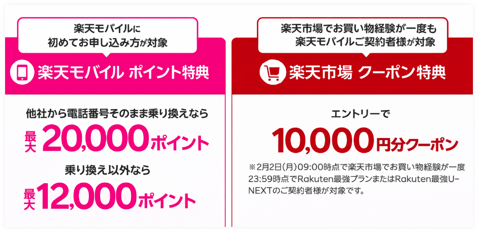 楽天モバイル初めての申し込み&楽天市場初めてのご利用で最大30,000pt還元