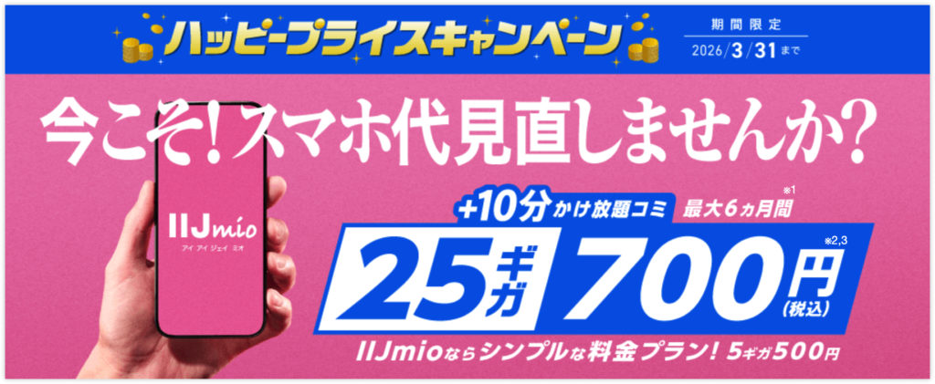 申し込みの際は必ず IIJmio 公式サイトをご確認ください。プラン内容やキャンペーン情報はすべてIIJmio公式サイトの内容が正となります。